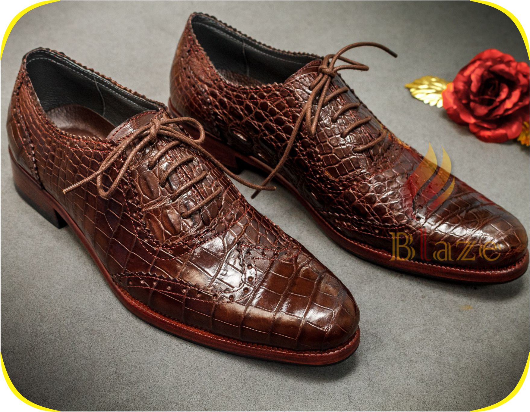 Giày Tây Wingtip Oxford Da Cá Sấu Cao Cấp | Da Bụng